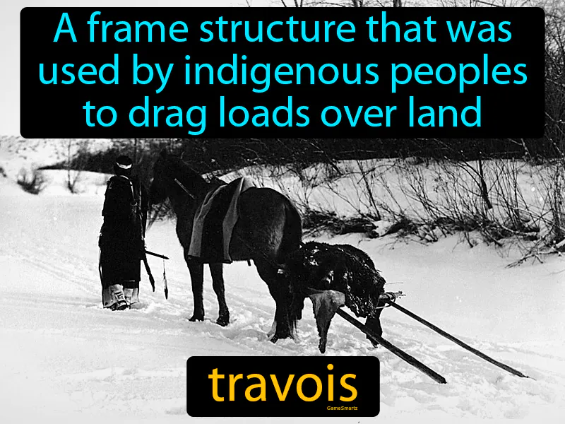 Travois: A frame structure that was used by indigenous peoples to drag loads over land. Travois. Historically, a travois is a simple wooden frame used by Native Americans to transport goods efficiently over land.