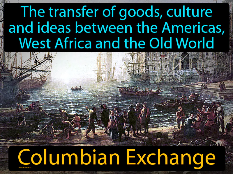 Columbian Exchange: The transfer of goods, culture and ideas between the Americas, West Africa and the Old World. Columbian Exchange. The Columbian Exchange refers to the widespread exchange of plants, animals, and diseases between the New and Old Worlds following Columbus's voyages.