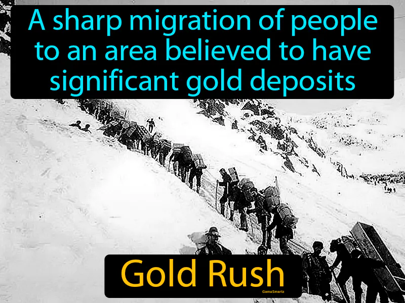 Gold Rush: A sharp migration of people to an area believed to have significant gold deposits. Gold Rush. A Gold Rush is a rapid movement of people to a region where gold has been discovered.