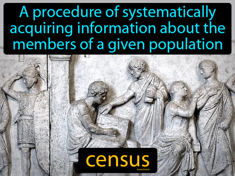 Census: A procedure of systematically acquiring information about the members of a given population. Census. In history, a census is a count of people and households that helps governments make important decisions.