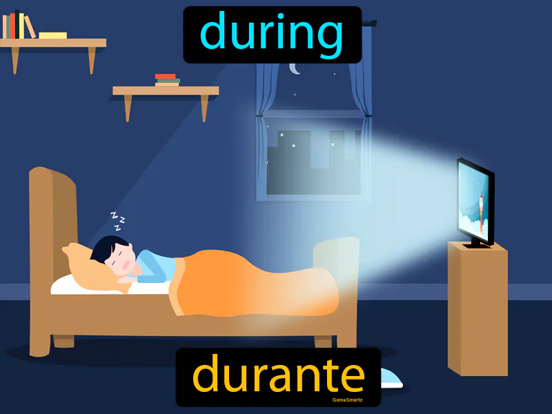 Durante: During. Durante. In Spanish, "durante" means "during" and is used to indicate a time period.