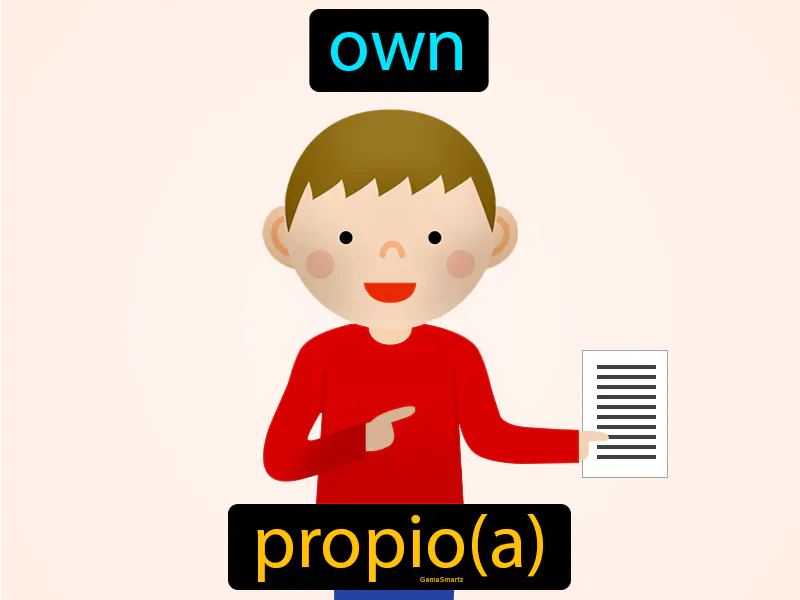 Propio: Own. Propio. In Spanish, "propio" means something that belongs to or is characteristic of a person or thing.