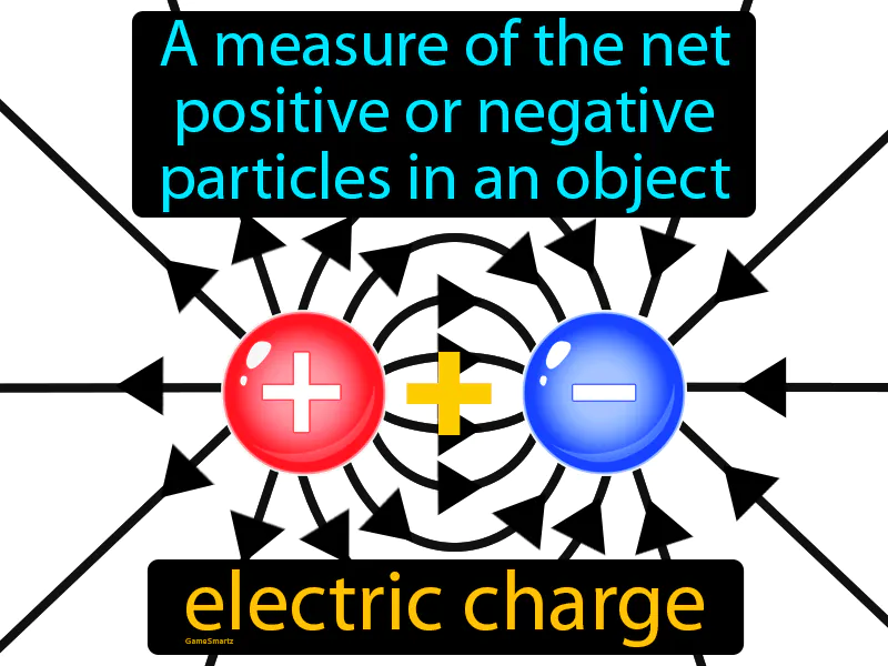 Electric Charge: A measure of the net positive or negative particles in an object. Electric charge. Electric charge is a property of particles that causes them to attract or repel each other based on their positive or negative nature.