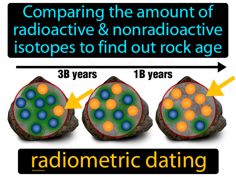 Radiometric Dating: Comparing the amount of radioactive and nonradioactive isotopes to determine rock age. Radiometric dating. It's a scientific method used to date materials like rocks by measuring the decay of radioactive isotopes within them.