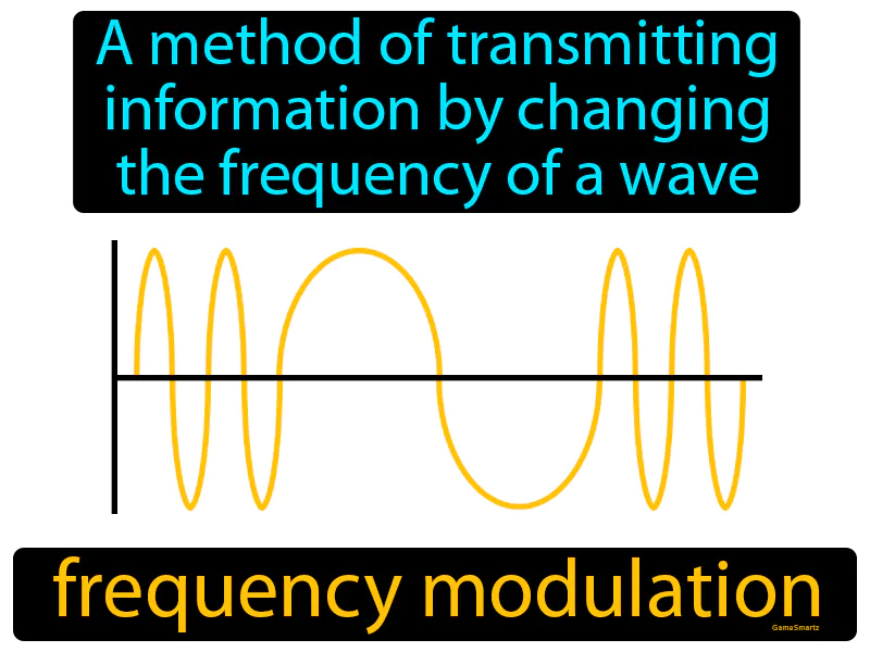 Frequency Modulation: A method of transmitting information by changing the frequency of a wave. Frequency modulation. Frequency modulation is a way to send signals by varying the frequency of a carrier wave based on the information being sent.