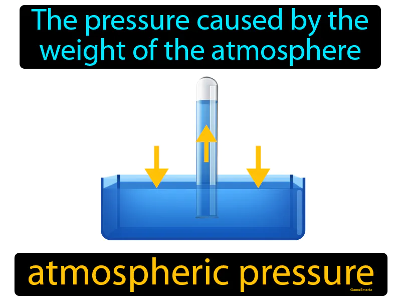 Atmospheric Pressure: The pressure caused by the weight of the atmosphere. Atmospheric pressure. Atmospheric pressure is the force exerted by the weight of air molecules pressing down on the Earth's surface.