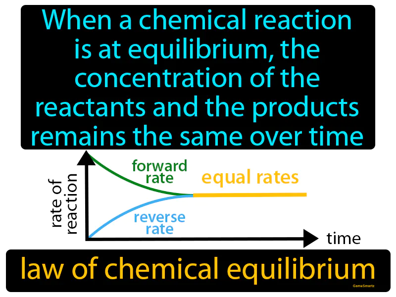 Law Of Chemical Equilibrium: When a chemical reaction is at equilibrium, the concentration of the reactants and the products remains the same over time. Law of chemical equilibrium. It means that at equilibrium, the rates of the forward and reverse reactions are equal, keeping concentrations constant.