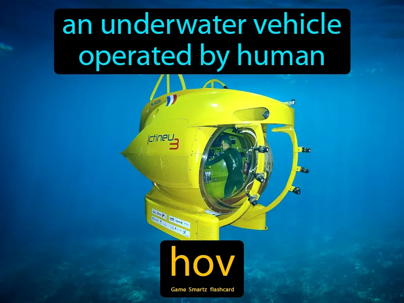 Hov: An underwater vehicle operated by a human. HOV. An HOV, or Human-Occupied Vehicle, is a type of submarine that allows humans to explore the ocean depths directly.