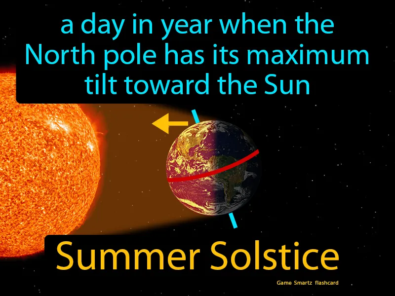 Summer Solstice: A day in year when the North pole has its maximum tilt toward the Sun. Summer Solstice. It's the day when the Northern Hemisphere experiences the longest period of daylight.