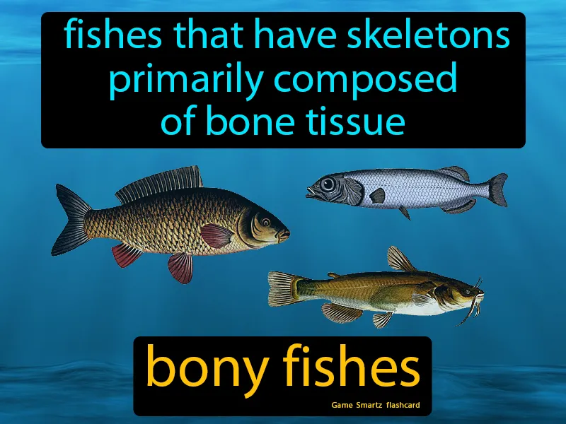 Bony Fishes: Fishes that have skeletons primarily composed of bone tissue. Bony fishes. Bony fishes are a type of fish with skeletons made mostly of hard bone instead of cartilage, helping them swim and survive in different water environments.