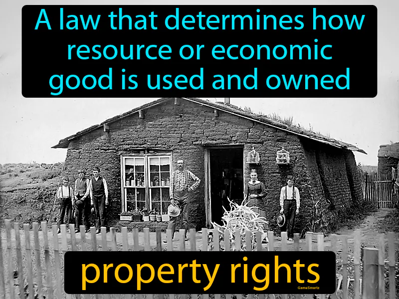 Property Rights: A law that determines how resource or economic good is used and owned. Property rights. In history, property rights refer to the rules that determine who owns and controls land, goods, or resources.