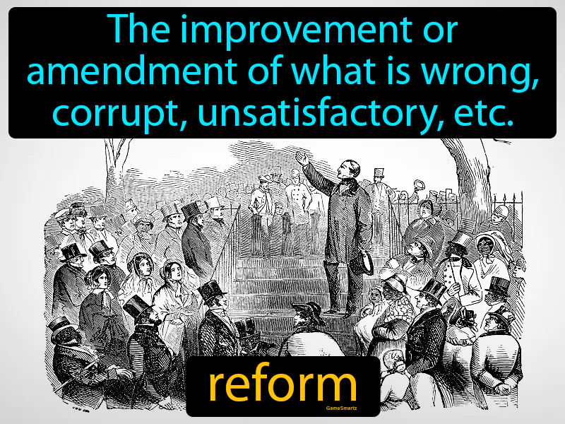 Reform: The improvement or amendment of what is wrong, corrupt, unsatisfactory, etc., is reform. In history, reform is when people or governments change rules or systems to make society better.