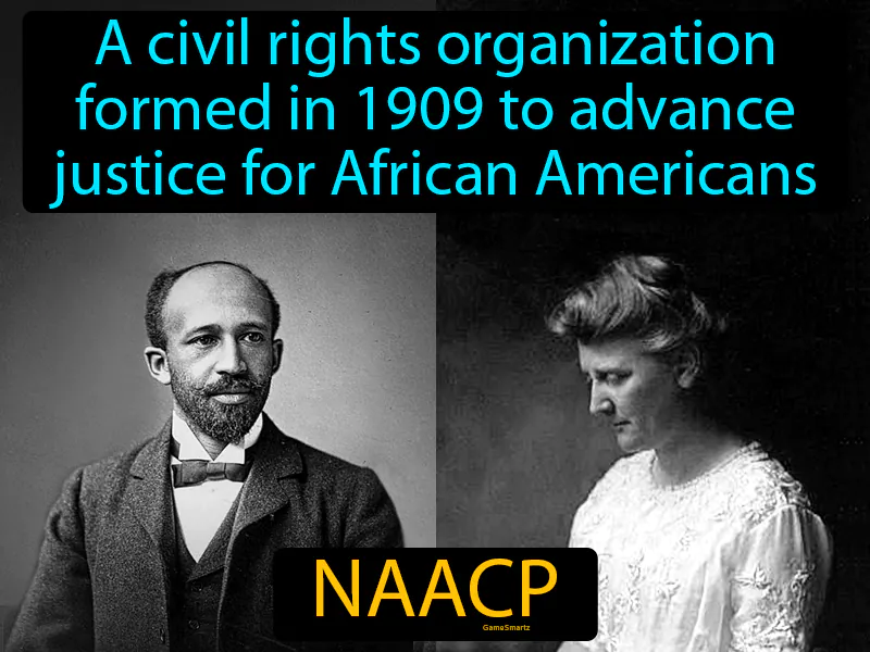 NAACP: A civil rights organization formed in 1909 to advance justice for African Americans. NAACP. The NAACP is a historic organization that fights for the rights and equality of African Americans.