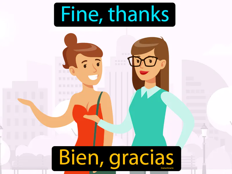 Bien Gracias: Fine thanks. Bien gracias. "Bien gracias" means "well, thanks" in Spanish, expressing polite gratitude.
