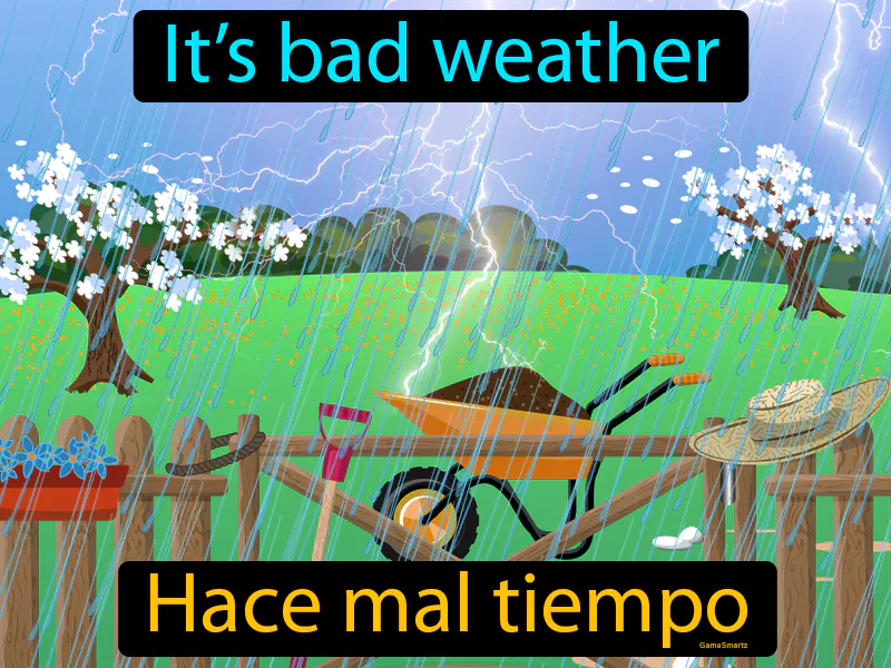Hace Mal Tiempo: Its bad weather. Hace mal tiempo. In Spanish, "hace mal tiempo" means "the weather is bad."