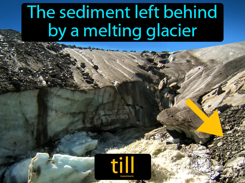 Till: The sediment left behind by a melting glacier. Till. Till is a mix of rocks, sand, and clay deposited directly by a glacier.
