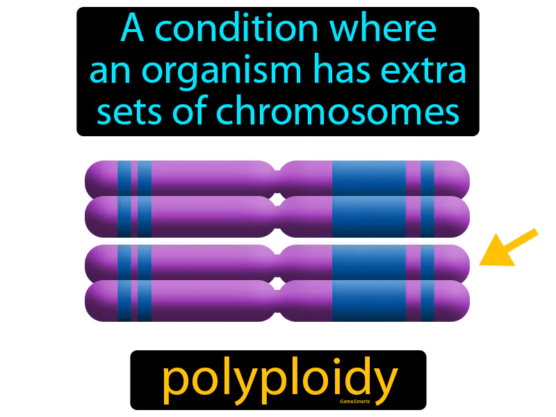 Polyploidy: A condition where an organism has extra sets of chromosomes. Polyploidy is when an organism has more than two complete sets of chromosomes, which can lead to larger cell size and sometimes greater adaptability.