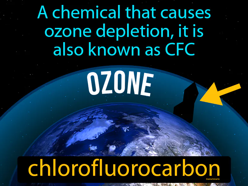 Chlorofluorocarbon: A chemical that causes ozone depletion, it is also known as CFC. Chlorofluorocarbon. Chlorofluorocarbon is a man-made compound used in products like aerosols and refrigerants that can damage the Earth's ozone layer.