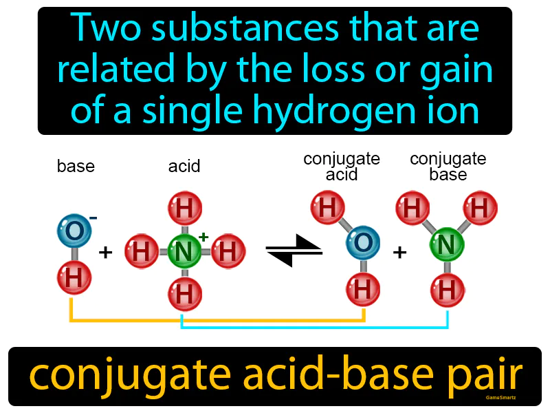 Conjugate Acid-base Pair: Two substances that are related by the loss or gain of a single hydrogen ion conjugate acid-base pair. In science, a conjugate acid-base pair consists of two molecules, where one can donate a hydrogen ion and the other can accept it.