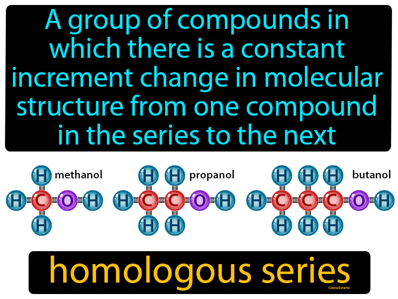 Homologous Series: A group of compounds in which there is a constant increment change in molecular structure from one compound in the series to the next. Homologous series. In science, a homologous series is a family of compounds with similar chemical properties and structures that differ by a repeating unit, like a CH group.