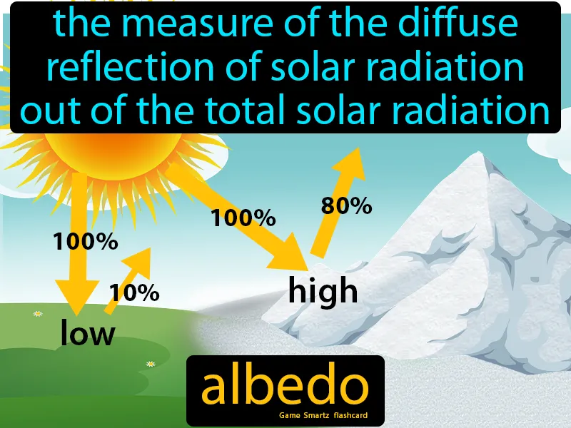 Albedo: The measure of the diffuse reflection of solar radiation out of the total solar radiation. Albedo. Albedo is a measure of how much sunlight a surface reflects back into space.