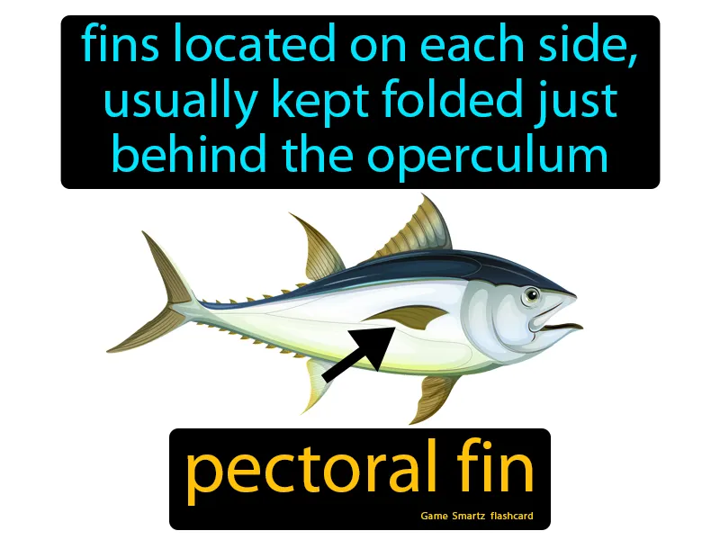 Pectoral Fin: Fins located on each side, usually kept folded just behind the operculum. Pectoral fin. In simple terms, a pectoral fin is a fish's side fin that helps it steer and balance in water.